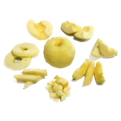Die geschälten und entkernten Äpfel werden ohne weitere Behandlung in die gewünschten Größen (Scheiben, Pommes, Würfel etc.) geschnitten und verpackt. Die natürliche Braunfärbung, die aufgeschnittene Äpfel an Luft erzeugen, wird durch Luftentzug gemindert, kann allerdings nicht vollständig verhindert werden. Der natürliche Geschmack des Apfels bleibt jedoch erhalten und das Produkt enthält keine Konservierungsstoffe oder Antioxidationsmittel. Die Haltbarkeit bei dieser Behandlung beträgt 4 Tage.